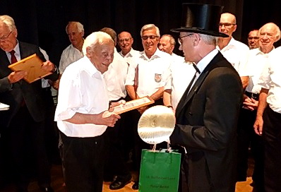 Lord Peter gratuliert Edmund für 80 Jahre aktives Singen |